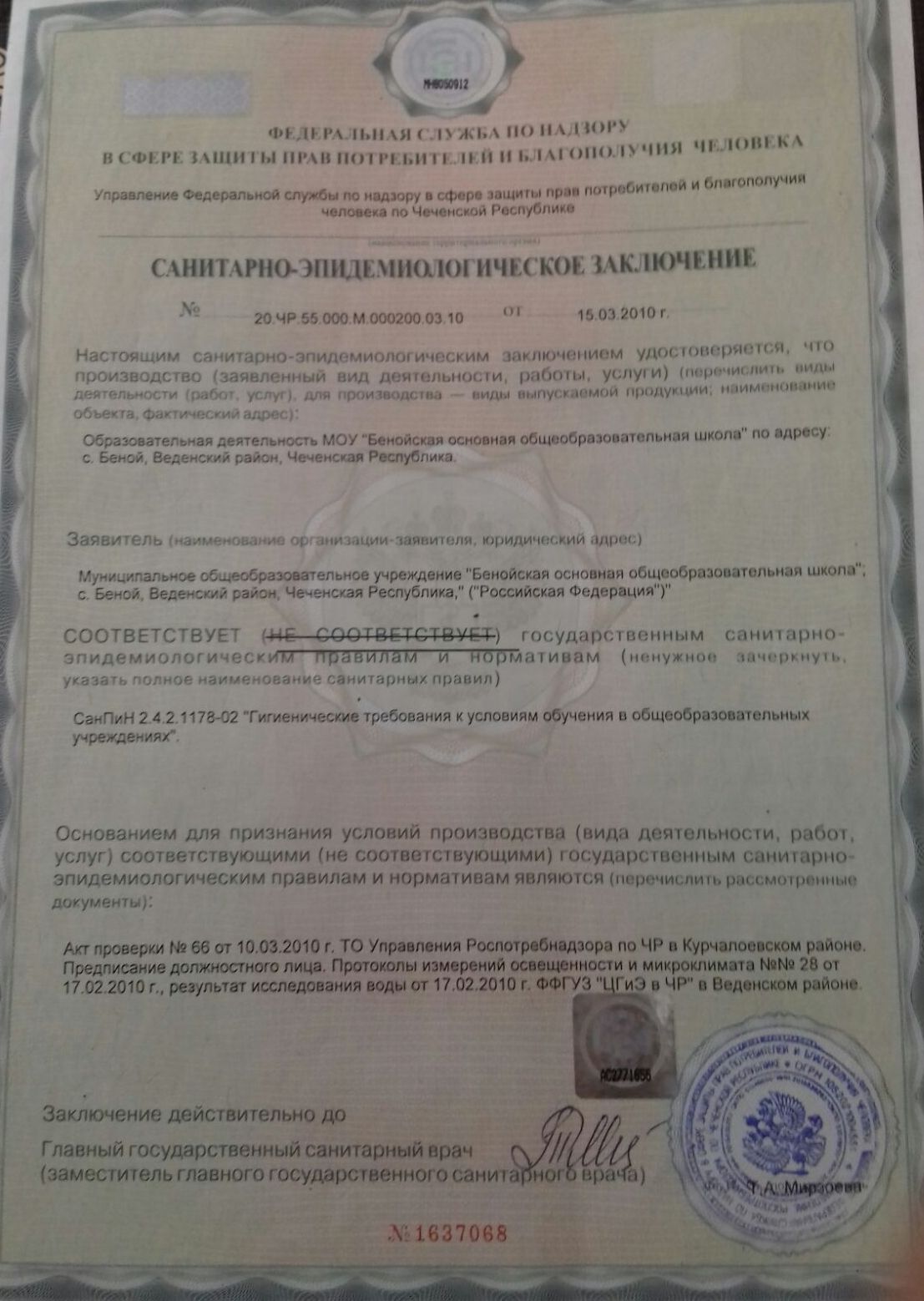 начального общего, основного общего и среднего общего образования на территории Веденского муниципального района Чеченской Республики