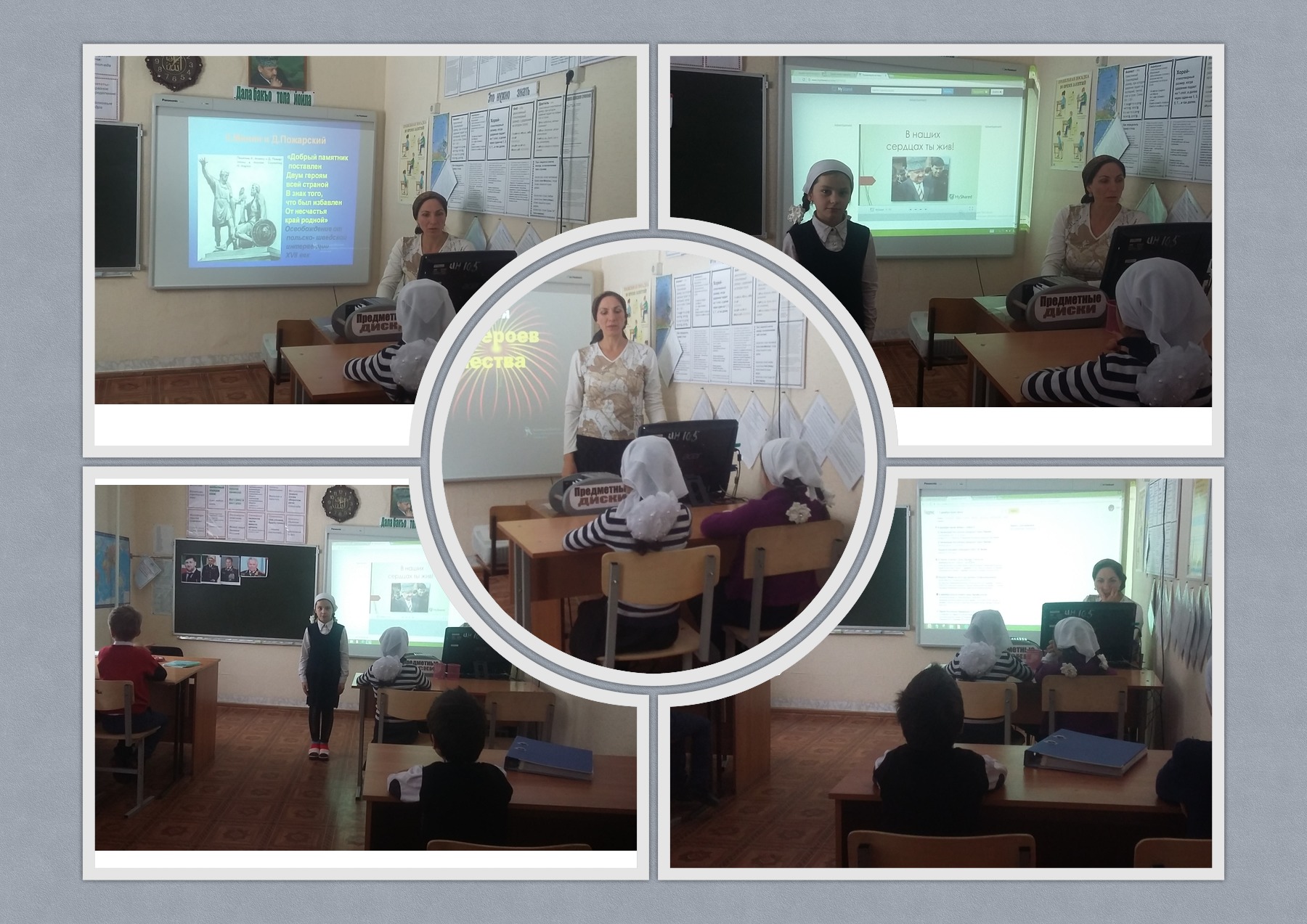 09.12.2016Классный руководитель Дилиева Луиза Бачаевна познакомила учеников 2 класса с Героями Отечества. Она рассказала о бессмертных подвигах Героев России, о тех поступках и делах, совершенных ими во имя благоденствия и процветания России!