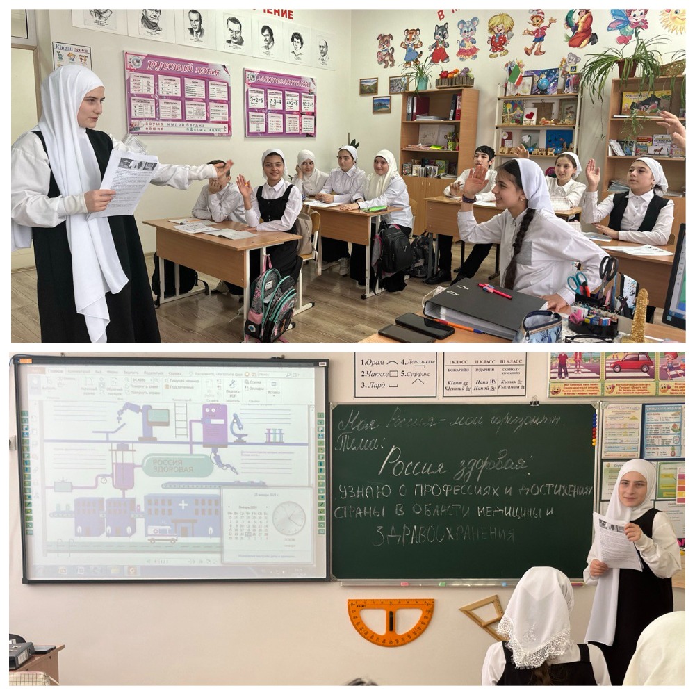 29.01.2024Карина, ученица профильного психолого-педагогического класса Бенойской СОШ «примеряет» профессию педагога на внеурочном занятии с обучающимися 7 класса «Россия - мои горизонты»