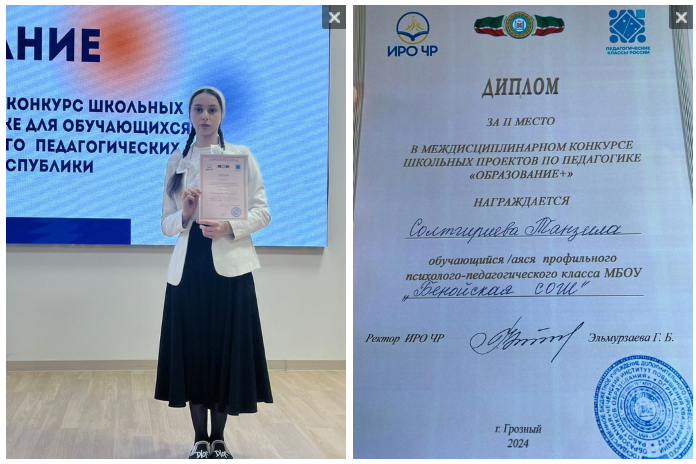 Конкурс состоял из двух этапов: первый отборочный тур, по итогам которого в финал вышли 10 проектов со всей Республики, и второй этап – очная защита проектов обучающимися, где определилась тройка победителей, ярко и достойно представившие свои исследовательские работы! Такие образовательные события способствуют раскрытию потенциала обучающихся, мотивируют к продуктивной деятельности и творческому поиску, а также помогают уверенному выбору профессиональной траектории!Бенойская СОШ искренне поздравляет Танзилу и желает дальнейших успехов и ярких побед!