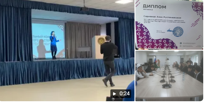 11.03.2024ПОЗДРАВЛЯЕМ НАШУ УЧЕНИЦУ 7 КЛАССА СИРИЕВУ АЛИЮ С ПОБЕДОЙ В РЕГИОНАЛЬНОМ КОНКУРСЕ ОРАТОРСКОГО МАСТЕРСТВА «МАСТЕР СЛОВА», организованном ГБНОУ «РКОиДО Квант» В данном конкурсе состязалось несколько десятков обучающихся со всей Республики, которым предстояло продемонстрировать ораторское искусство, оригинальность выступления, выразить основную мысль, показать содержательное и полное воспроизведение заявленной темы.Конкурс был направлен на выявление и поддержку одаренных детей Чеченской Республики, вовлечения школьников в творческую деятельность и повышения ораторского мастерства.