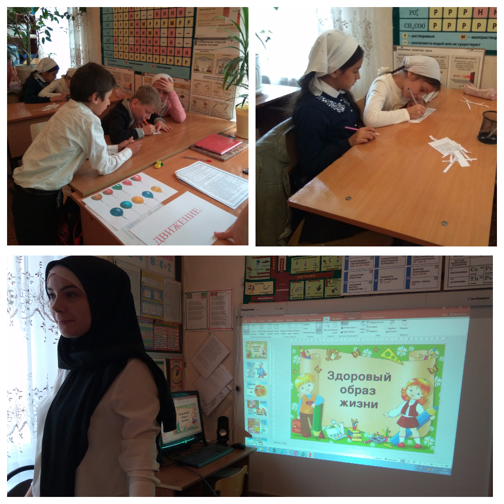 В ходе классного часа были показаны мультфильмы на данную тематику с дальнейшим обсуждением увиденного. Также Мадина Им-Алиевна подготовила мультимедийную презентацию и викторину на тему: «В здоровом теле - здоровый дух» для лучшего усвоения материала.