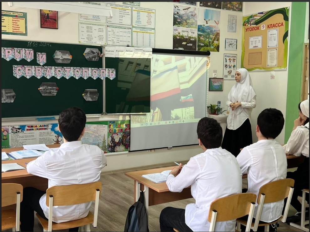 18.03.2024В нашей школе прошел увлекательный и познавательный классный час, посвященный важному событию - Дню воссоединения Крыма с Россией.В 9-м классе ученики активно обсуждали исторические аспекты этого события, его значение для нашей страны и национальной гордости.Ученики получили возможность задать вопросы, выразить свое мнение и поделиться своими эмоциями. Это мероприятие стало не только замечательной возможностью узнать больше о важном историческом событии, но и показало, как необходимо помнить и ценить нашу Родину.