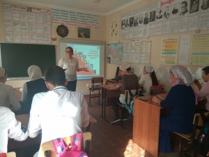 В беседе приняли участие директор школы Демельханова З.У, обучающиеся старших классов, учитель биологии Шаипова Э.М и заместитель директора по воспитательной части Тайсумова М.Х.