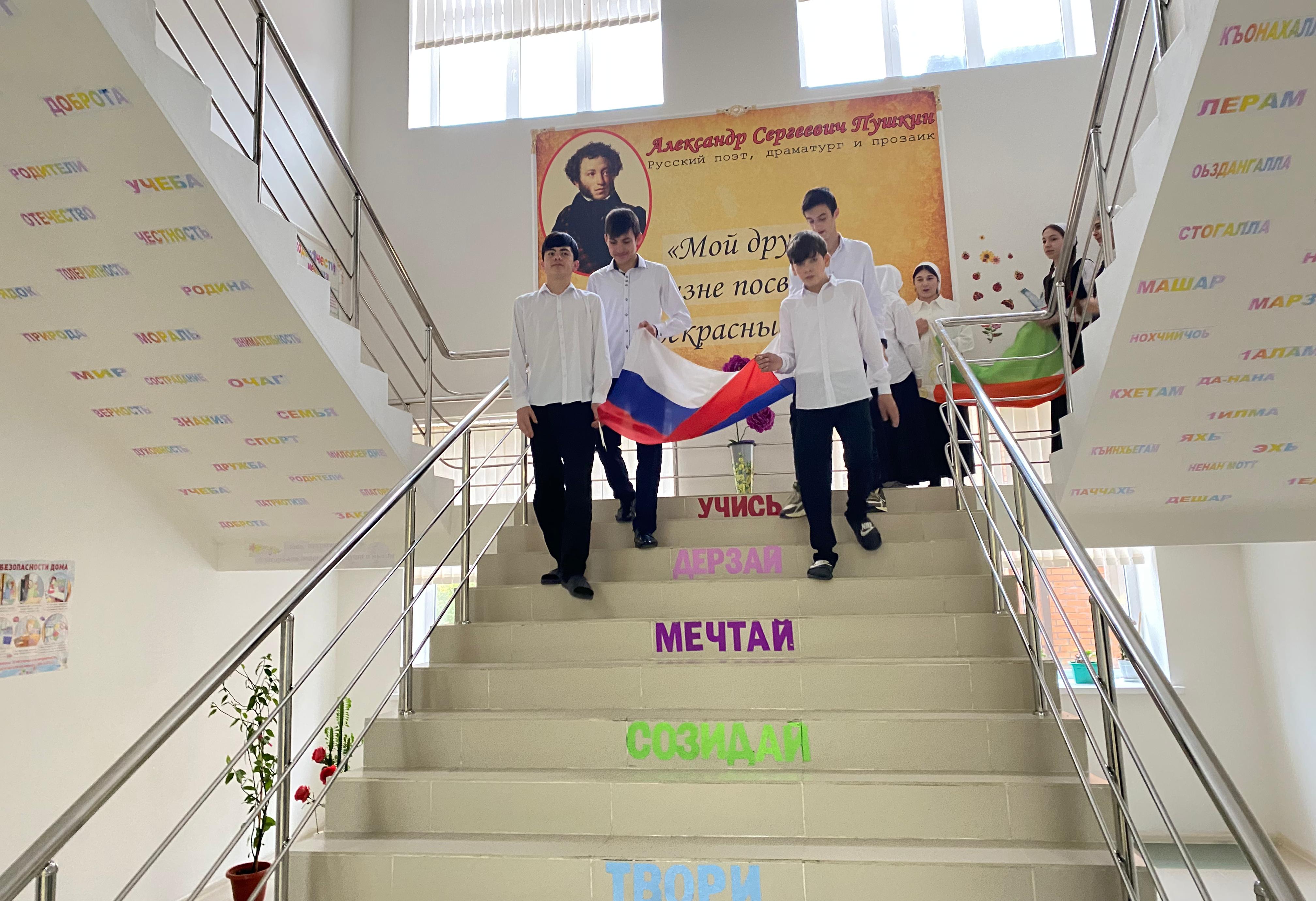 На этой неделе прошла традиционная еженедельная линейка с выносом Государственных флагов Российской Федерации и Чеченской Республики! 🎉