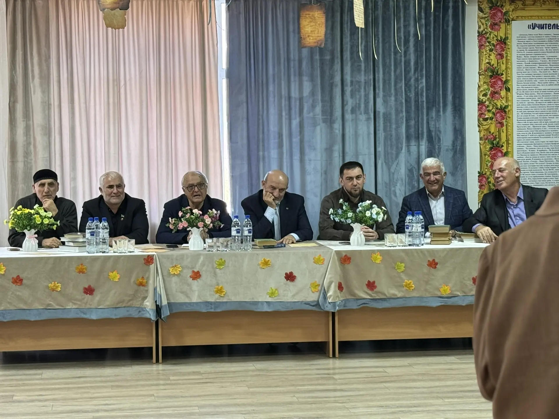 На встречу с учениками и педагогами приехали: • Хожбауди Рамзанович Борхаджиев – политик, советский и российский чеченский поэт, писатель, публицист, переводчик и журналист; ✍️📚 • Эльмурзаев Усман Данчаевич – политик и чеченский писатель; 🖊️🇷🇺 • Юсупов Руслан Хамидович – российский чеченский поэт и публицист, почетный председатель Союза журналистов ЧР, член Союза писателей России; 🎭📝 • Эльсункаев Надирсолта Мадаевич – писатель, публицист, член Союза писателей России. ✨📖