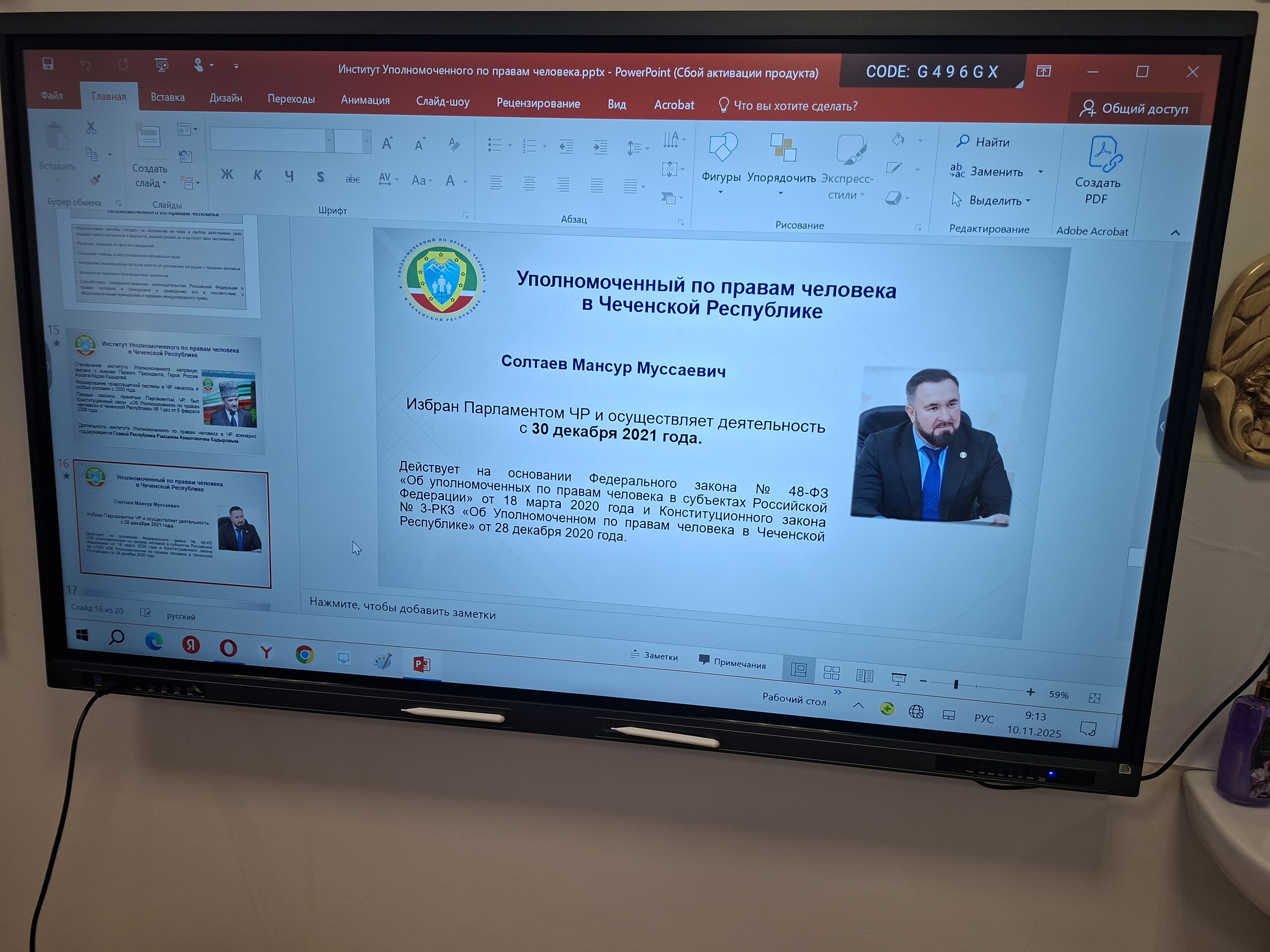 15.11.2025ПРАВОВОЙ УРОК С УПОЛНОМОЧЕННЫМ ПО ПРАВАМ ЧЕЛОВЕКА: ЗНАТЬ СВОИ ПРАВА — ЭТО ВАЖНО! ⚖️👩⚖️