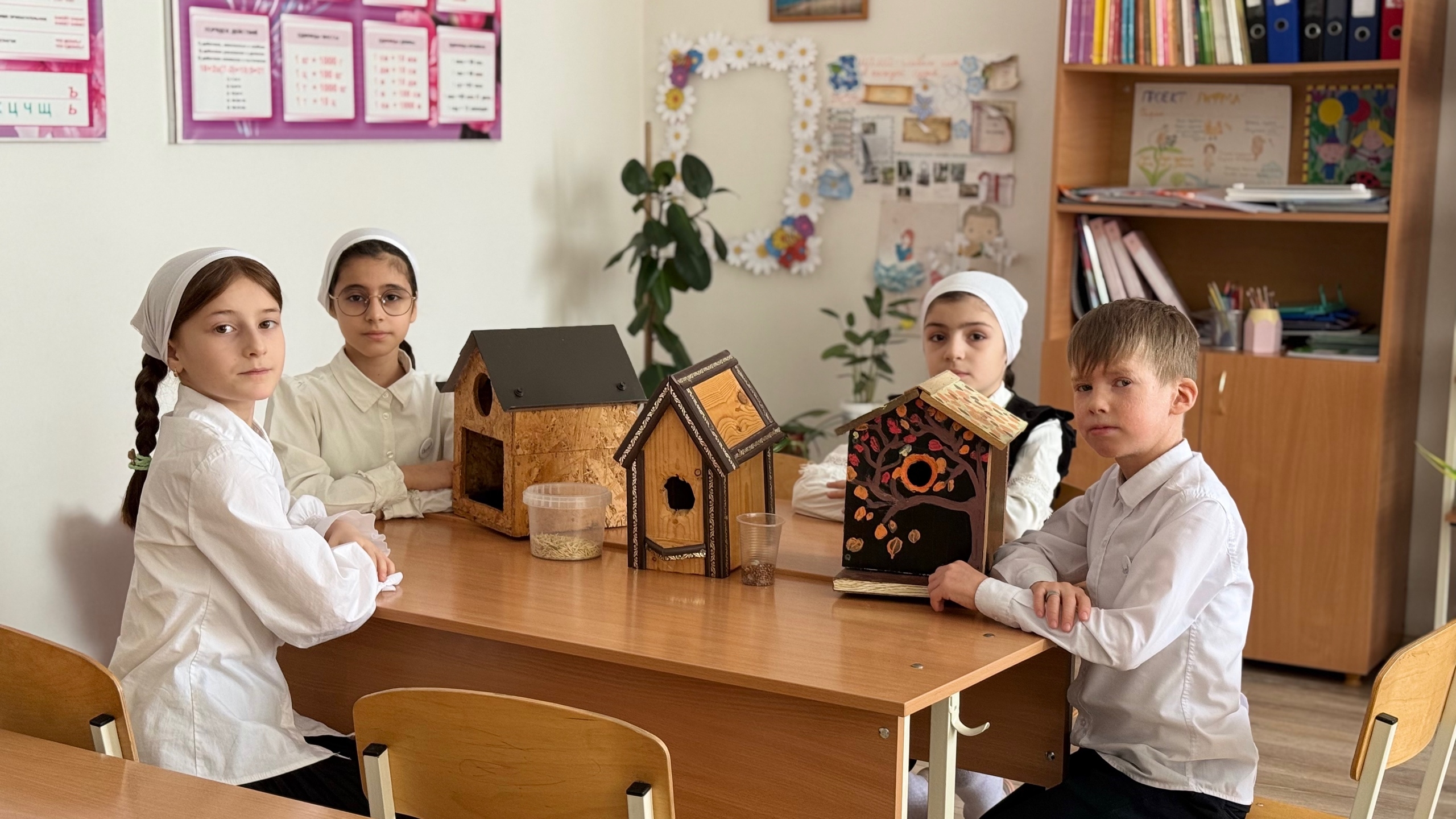 🛠 Творчество и забота: Одним из самых тёплых моментов стала акция «Помоги пернатым!» 🐦❄️. Под руководством Дилиевой Луизы Бачаевны 👩🏫 и советника директора по воспитанию Мацаевой Р. М. 🤝, ребята своими руками мастерили уютные деревянные домики-скворечники 🔨🏠. А потом всей дружной командой развесили их, чтобы птичкам было легче зимой 🌳🤲. Это урок настоящей, практической доброты! 💖