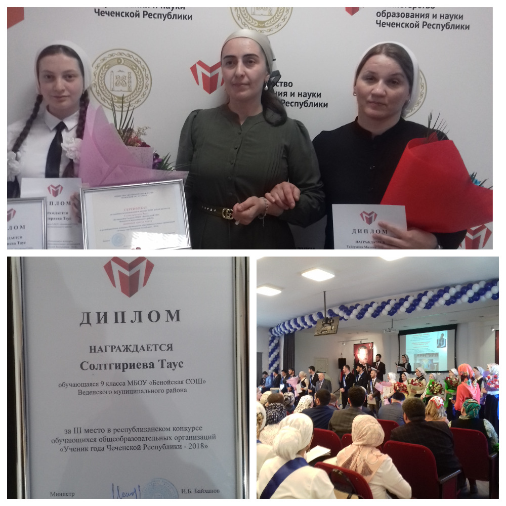 20.05.2018Наша ученица 9 класса Солтгириева Таус стала победителем республиканского конкурса "Ученик года Чеченской Республики-2018"! Таус заняла 3 место в этом нелегком и напряженном конкурсе, в котором участвовали лучшие ученики республики!