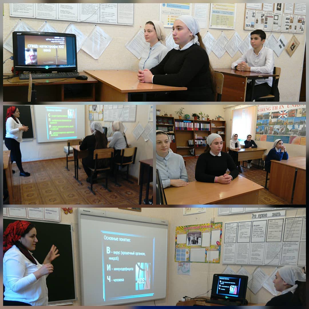 03.12.20181 декабря — Всемирный день борьбы против СПИДа. В Бенойской школе стало традицией проводить мероприятия, посвященные Всемирному дню борьбы со СПИДом.Классный руководитель 9 класса Шаипова Э.М. провела для своих воспитанников классный час на тему "СПИД-глобальная проблема человечества". В ходе беседы Эсет Мухайдовна, биолог по специальности, рассказала о том, что такое ВИЧ, СПИД, как ВИЧ передается и не передается, закончила сообщением о том, что люди, имеющие положительный статус, должны быть полноценными членами общества, имеющими социальные и медицинские гарантии.