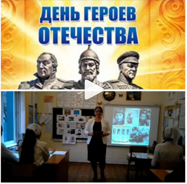 12.12.20189 декабря в нашей стране отмечается праздник "День Героев Отечества". Заместитель директора по ВР Тайсумова М.Х. провела классный час для обучающихся старших классов на тему "Не забудем имена былых героев". В ходе часа общения обучающиеся узнали о подвигах ветеранов ВОВ, не были забыты также подвиги юных героев. Ребята смогли ответить на вопрос "Можно ли быть патриотом своей Отчизны в мирное время"? Можно.. В качестве примера ребята привели Главу Чеченской Республики Рамзана Ахматова Кадырова. Его стараниями наша республика процветает, таково было их единодушное мнение.Поздравляем всех Героев Отчизны, ныне здравствующих, и не забудем также тех,кто не пожалел своей жизни ради мира на земле.