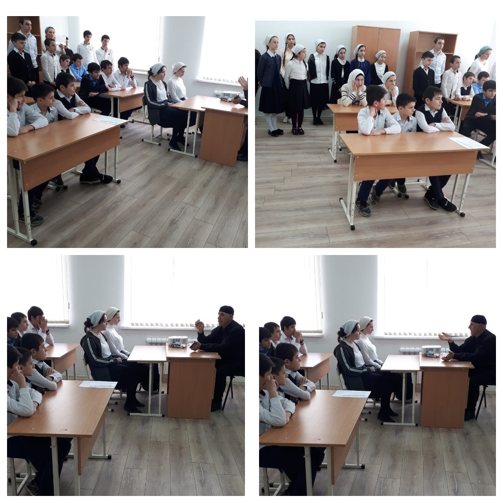05.02.2019Духовник Бенойской СОШ Ахаев Э.Л. провел сегодня беседу с обучающимися 8-11 классов на тему "Ислам - религия мира и добра". В ходе мероприятия духовником были озвучены важные предписания религии: необходимость следования путем добра, почитание родителей, старших, уважение к закону, власти, любовь к Отчизне. Беседа была очень продуктивной и прошла в интерактивной форме. Такого рода мероприятия носят системный характер в нашей школе и направлены на реализацию Единой Концепции духовно-нравственного воспитания подрастающего поколения Чеченской Республики.