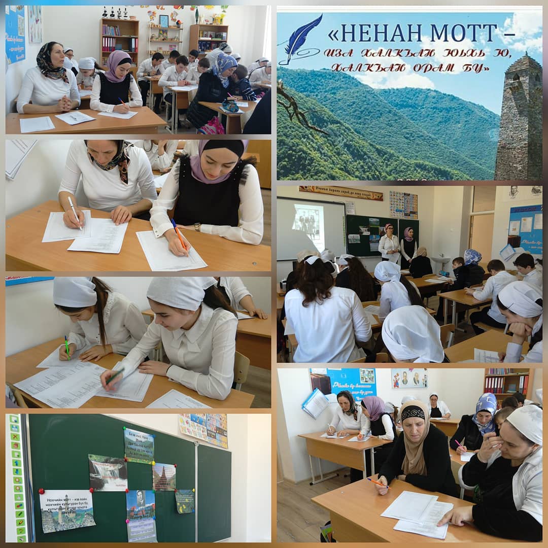 2019-чу шеран оханан беттан 9-чу дийнахь школехь д1аяьхьира Этнографически диктант "Ненан мотт- иза халкъан юьхь ю, халкъан орам бу!".